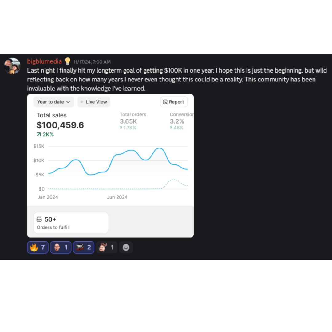 Whether your interest lies in dropshipping or selling digital products, you will discover a community tailored for you, where you are surrounded by like-minded individuals. See the results achieved by our members all around the world as they thrive across different marketplaces!